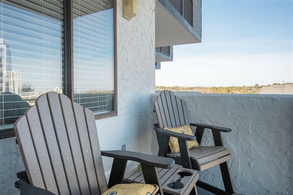 Private balcony with Adirondack chairs and sweeping ocean views — perfect for morning coffee or evening sunsets