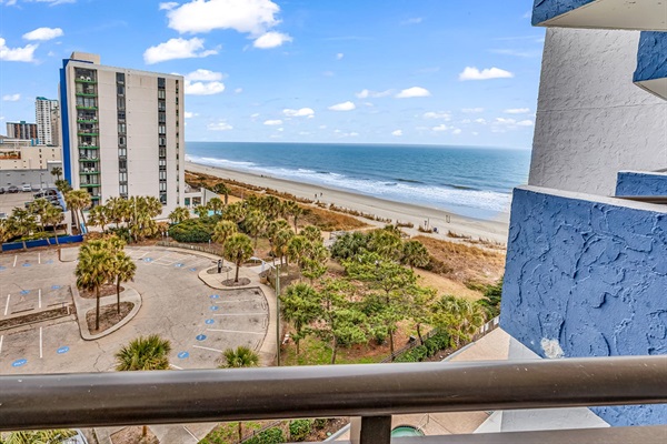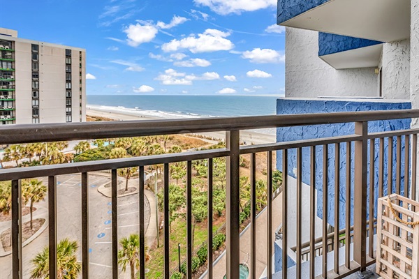 Wide ocean view from the balcony — take in the full panorama of the beach, pool area, and Atlantic coastline