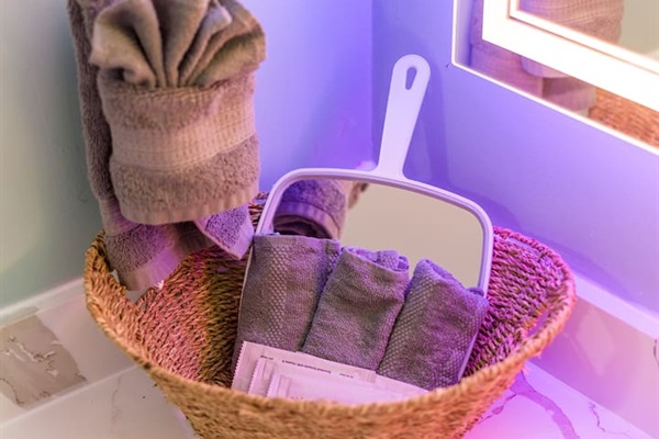 Fresh towels provided — bathroom stocked for a comfortable stay