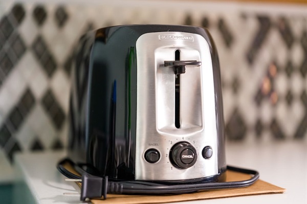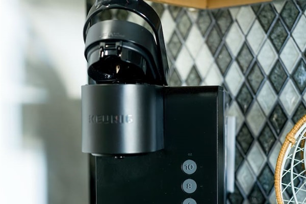 Kitchen counter with Keurig, mugs, paper towels, and cooking utensils — all the essentials ready to use